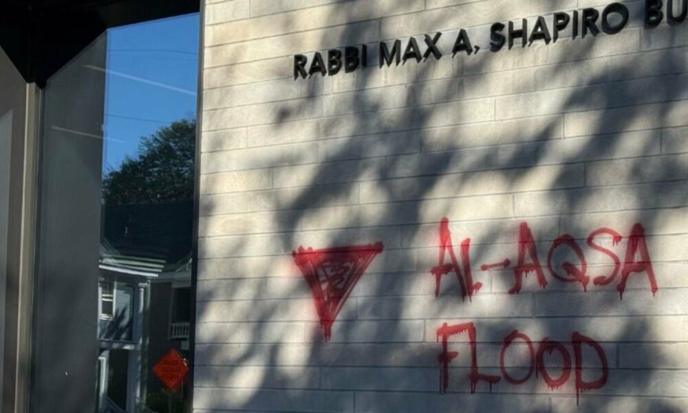 Graffiti targeting “zionists” and praising Hamas was spray-painted on the preschool wing of a Minneapolis synagogue on Tuesday night, the second anniversary of Hamas’ Oct. 7,...