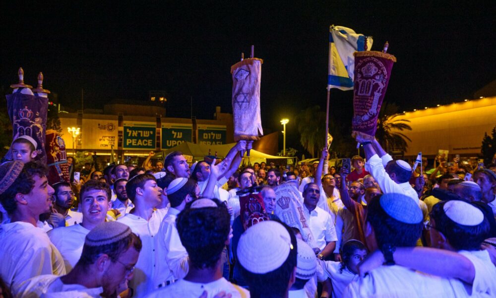Rabba Anat Sharbat, the unofficial “rabbi of Hostages Square,” wept as she recited the Shehechiyanu blessing after lighting the candles to mark the beginning of Simchat...