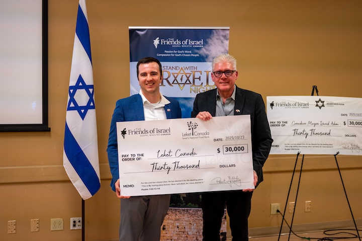 On the evening of Thursday, October 23, the Christian Zionist organization hosted its second annual “Stand With Israel Night,” the highlight of which was the presentation of $30,000 cheques to three Israel-based charities.