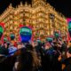 Anti-Israel demonstrators release smoke in the colors of the Palestinian flag as they protest to condemn the Israeli forces’ interception of some of the vessels of...
