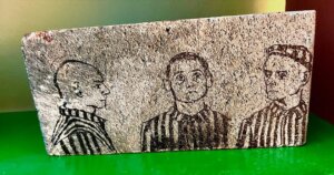 I had lunch with my friend Christine who afterwards walked with me to the secret hiding place and helped me carry them through the park. She was equally astonished by them. When I got home, I showed my spouse, Kevin, a talented writer and editor, who knew at once what they were. They were Jewish prisoners from the concentration camps and the numbers hastily taped to the sides were some kind of identification numbers. I wondered if they were the ones tattooed on their arms.