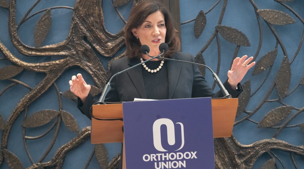 Hochul’s announcement came during a 90-minute conference held by the Orthodox Union at Manhattan’s Lincoln Square Synagogue to discuss the rise of antisemitism. The event also featured Sen. Chuck Schumer, New York City Mayor Eric Adams and Homeland Security Secretary Alejandro N. Mayorkas.