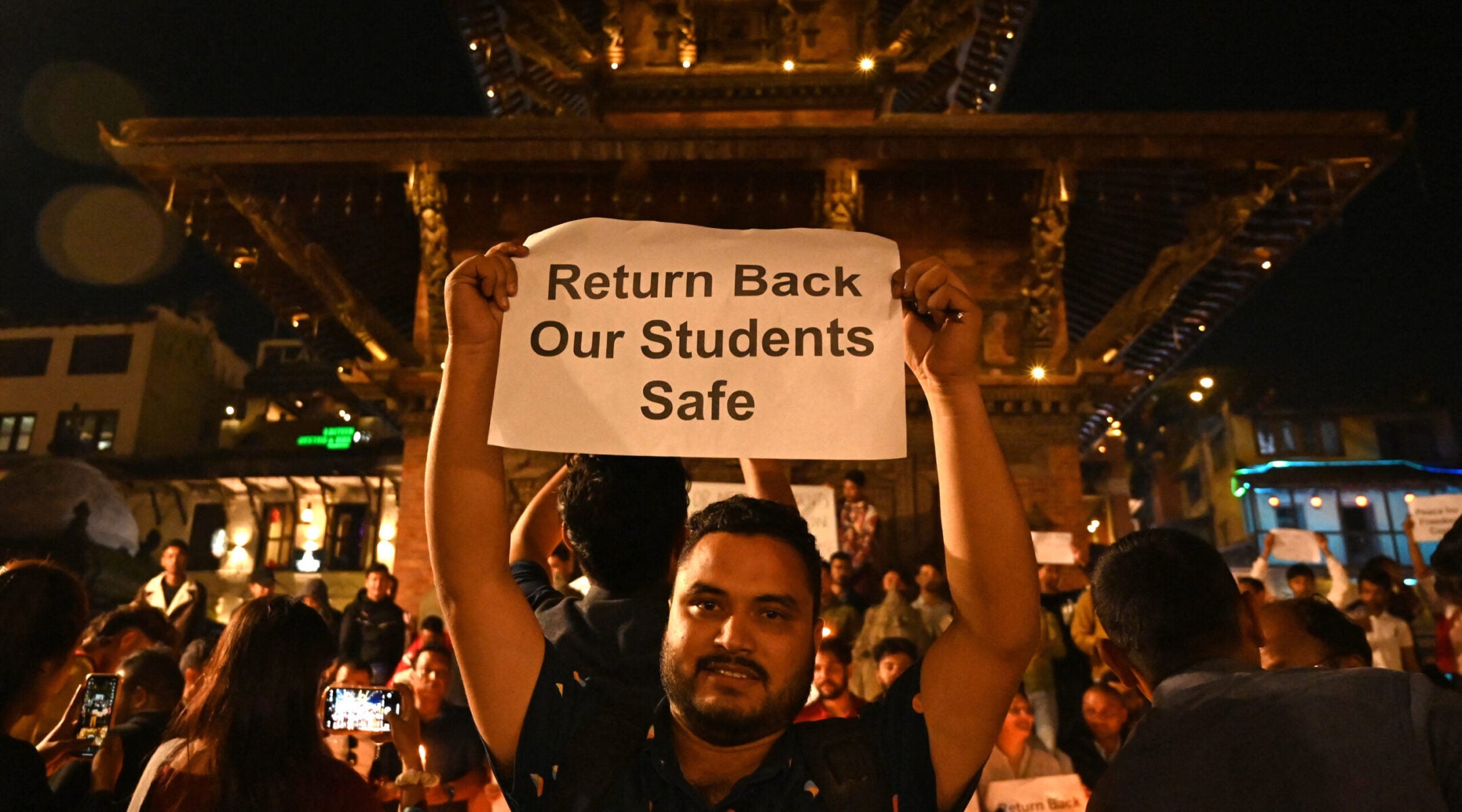 Students take part in a candlelight vigil in Lalitpur, Nepal, on Oct. 9, 2023, in memory of Nepali citizens who were killed in Kibbutz Alumim, in Israel. (Prakash Mathema/AFP via Getty Images)