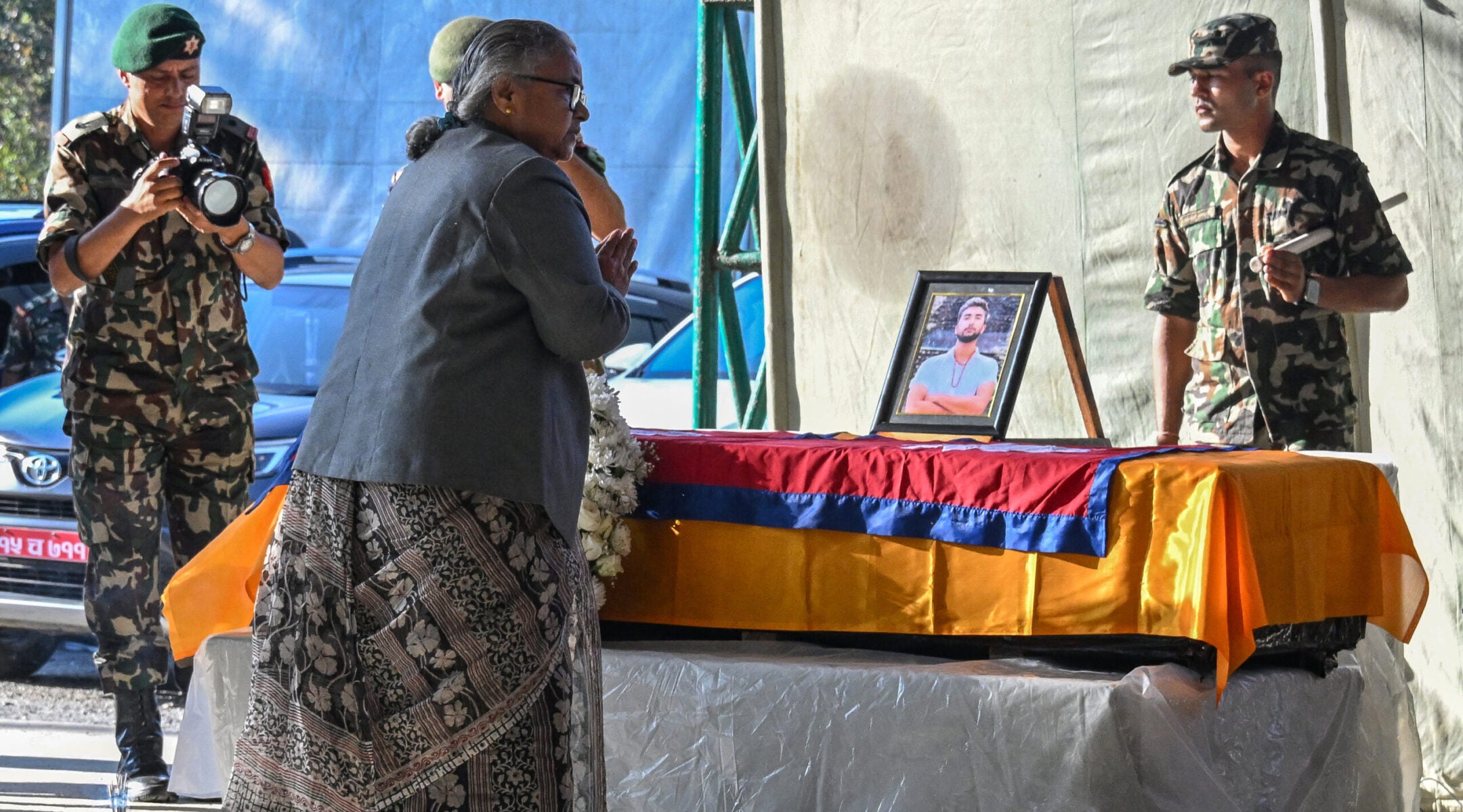 Then, Bipin’s body was flown to Kathmandu, where Prime Minister Sushila Karki draped Nepal’s flag over it during a brief ceremony at the airport.