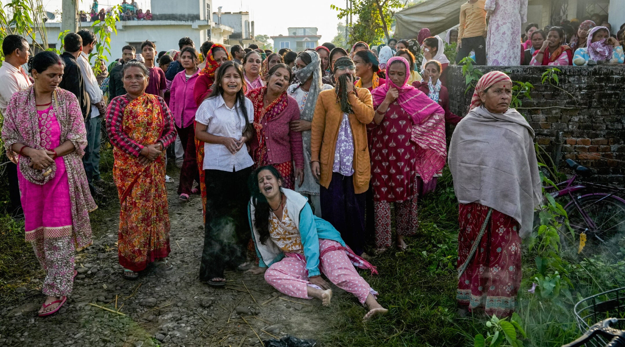 Family members mourn during the funeral ceremony of Bipin Joshi at his residence in Kanchanpur, Nepal, on Oct. 21, 2025. Prakash Chandra Timilsena/AFP via Getty Images)
