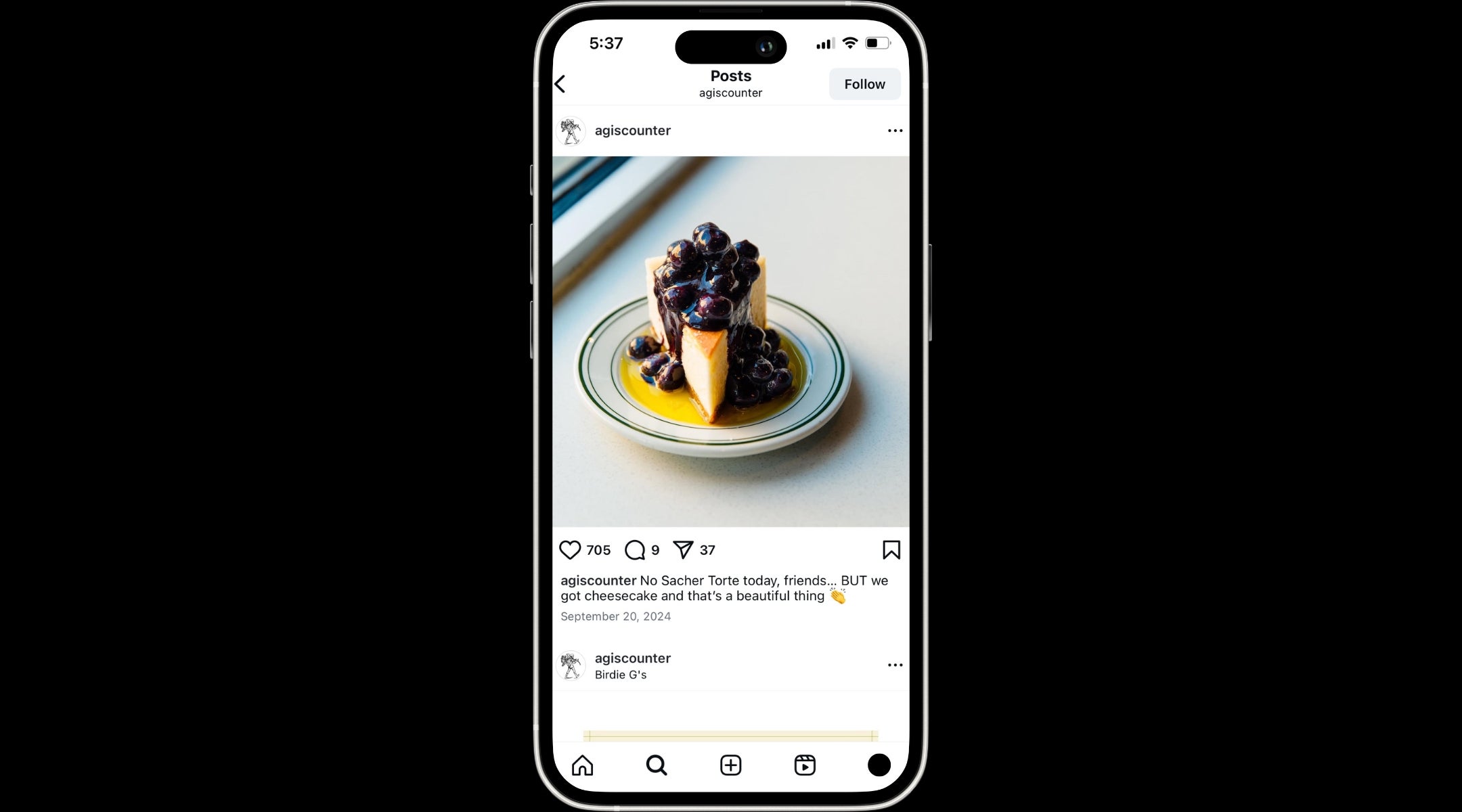 The cheesecake at Agi’s Counter with a blueberry compote. (Screenshot via Agi’s Counter Instagram)