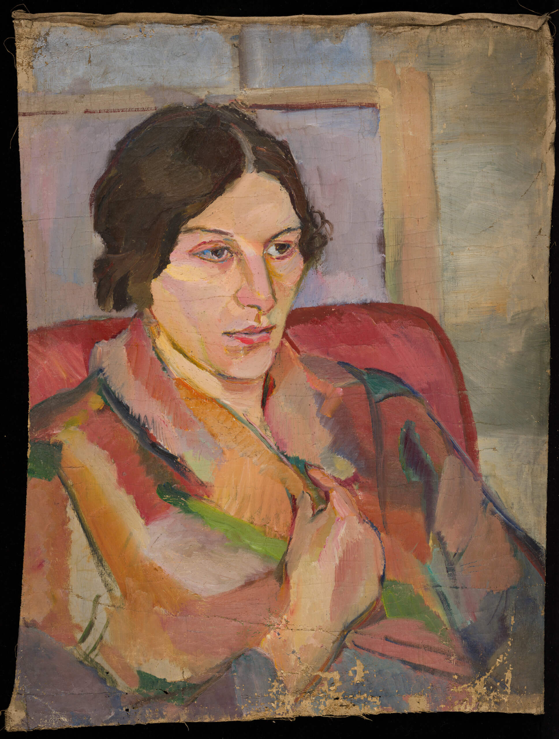 Moving away from Torah finials and portraits of prominent Jews, there’s a section dedicated to persecution and remembrance. Hanging there is a selection of intimate portraits by Gertrud Kauders, whose paintings were discovered in the walls of a home outside Prague during a 2018 home renovation. Kauders, an assimilated Czech Jew who was murdered in 1942 in Majdanek, hid them before her deportation.