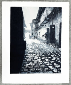 פֿראַנק סטעלאַ (2024-1936), אַ באַקאַנטער אַבסטראַקטער קינסטלער, איז געװען אַ קאַטױל פֿון מאַסאַטשוסעטס. מאַקאָמאַס האָט דערקלערט אַז דער ייִדישער אַרכיטעקט ריטשאַרד מײַער האָט געשאָנקען סטעלאַן אַן עקזעמפּלאַר פֿון „הילצערנע שילן“, װאָס האָט אינספּירירט סטעלאַס „פּױליש דאָרף“ סעריע פֿון 1974-1971 (נישט געקוקט אױפֿן װאָרט „פּױליש“ האָט סטעלאַ באַשטעטיקט אַז די װערק באַהאַנדלען צעשטערטע שילן). די סעריע באַשטײט פֿון 130 אַבסטראַקטע געאָמעטרישע געשטאַלטן. דאָ קען מען זען דאָס בילד „לונע“, װאָס איז אין דער אױסשטעלונג. לױט מעקאָמעסן רופֿן די הילצערנע פֿאָרעמס פֿון „פּױליש דאָרף“ אַרױס דאָס האָלץ פֿון די שילן, און די העלע קאָלירן דערמאָנען אין די פֿאַרביקע װאַנט־מאָלערײַען אינעװײניק.