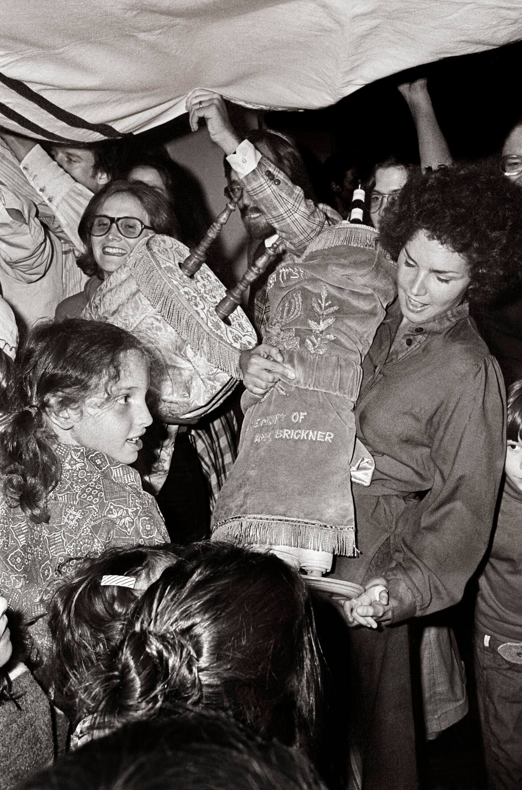 A series of photographs shows scenes from the New York Havurah, a lay-led, egalitarian Jewish religious movement: A rabbi stands in reverent contemplation under his tallit in a misty forest, a child smiles from her father’s shoulders during a Shabbaton. Aron was a member in the 70’s, which is how he found himself in the middle of those scenes. But, he said, he didn’t grow up observant, and without his camera, while he might have been a member, he would have been “a much more passive one,” he said.