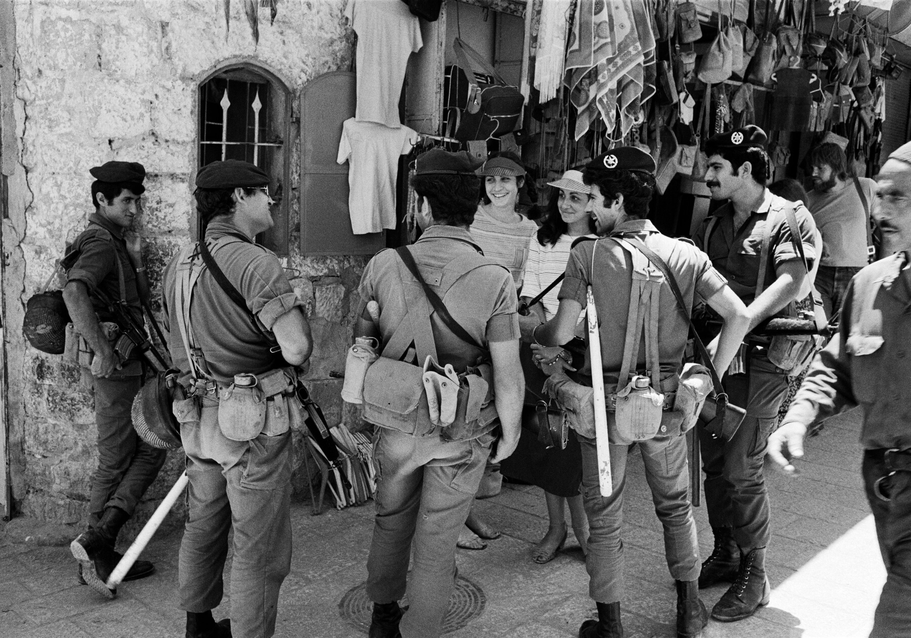 The stories come through in the images alone, too; each shot is redolent of Aron’s affection for his subjects. An Israeli soldier in Jerusalem’s Old City makes flirtatious eye contact with a woman as his companions smirk. An elderly man on a bench dives in to kiss his wife on the cheek. Holocaust survivors beam out from full color photos, not reduced to the numbers on their arms but presented as “people who lived lives, lived beyond their nightmares, had families where they could, given back to their communities,” Aron said.