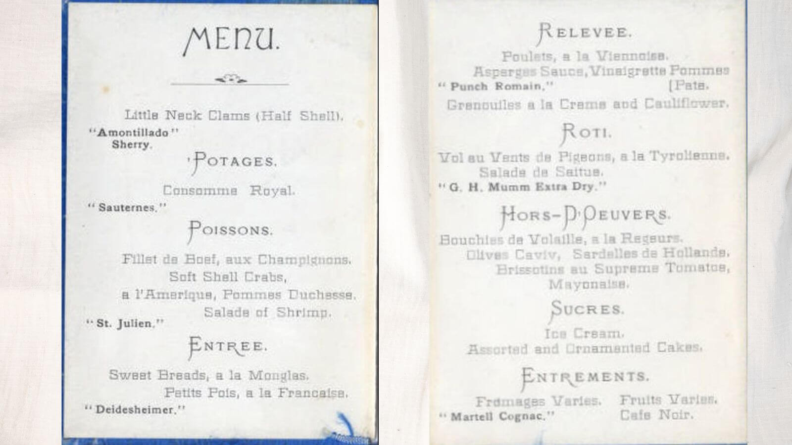 The impetus for this Talmudic bit of logic was in large part a now-infamous feast that has come to be known as the “Trefa Banquet,” due to the amount of non-kosher food that was served. The menu included littleneck clams, shrimp salad, soft-shell crabs, a lobster bisque and frog legs in a cream sauce. Bordeaux wine and Champagne, also not kosher, were served alongside each course, and ice cream — real ice cream, made with dairy — followed with dessert, despite previous meat courses that included beef tenderloins and squab.